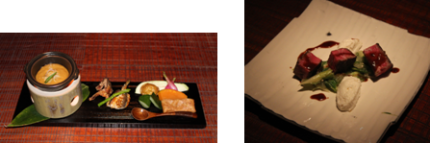 今回は「九州北部豪雨被害 復興支援企画」といたしまして、第2回料理マスターズ受賞者である坐来 大分(東京都)の梅原陣之輔氏とリストランテ・ミヤモト(熊本市)の 宮本健真氏の九州出身の二人が、一夜かぎりのコラボレーションメニューで九州の復興をアピール。加えて、大分、熊本両県の生産者の方にお越しいただき、実りの秋に向けた取り組みをお話しいただきました。また、デザートの間には、お越しいただいたお客様の中から大分、熊本、そして料理マスターズへ、心のこもった応援メッセージをいただきました。ありがとうございました。